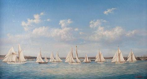 | Keywords: Ludwig Rubelli von Sturmfest Segelregatta 1892.jpg Segelregatta vor Pula Pola 10 April 1892 lower left place/date L de Rubelli signature lower right Gorizia place lower right 1892 date lower right n 451 number lower right oil on canvas ca 55 x 101 cm http //www dorotheum com 1892 Ludwig Rubelli von Sturmfest PD-old-100 Images from Dorotheum Sailing in art Ludwig Rubelli von Sturmfest 1892 paintings Historical images of Pula Regatta sailing | ||||