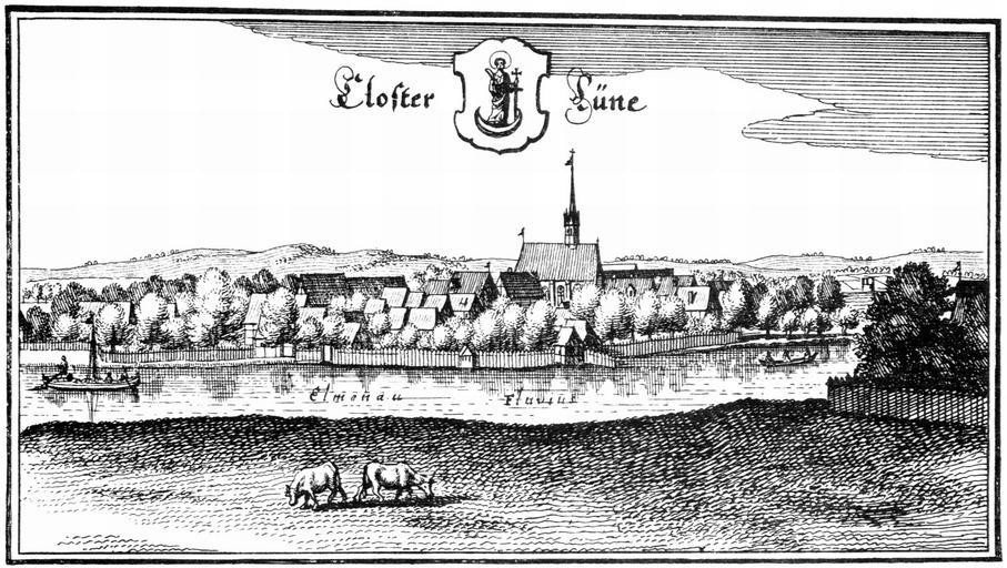 Keywords: Lueneburg-1654-Merian-Kloster.jpg Source Matthäus Merian Cityview Engravings of Topographia Braunschweig Lüneburg Lüne Kloster Lüne in art Ilmenau in Lüneburg Lüneburg in the 17th century Engravings of monasteries