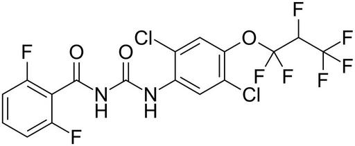 Keywords: Lufenuron 200.svg validSVG Structure of N- 2 5-dichloro-4- 1 1 2 3 3 3-hexafluoropropoxy phenyl carbamoyl -2 6-difluorobenzamide Own 2014-04-30 Emeldir <span class signature-talk >talk</span> Chemical structure verified https //upload wikimedia org/wikipedia/commons/a/a9/Lufenuron_200 svg 1S/C17H8Cl2F8N2O3/c18-6-5-11 32-17 26 27 14 22 16 23 24 25 7 19 4-10 6 28-15 31 29-13 30 12-8 20 2-1-3-9 12 21/h1-5 14H H2 28 29 30 31 PWPJGUXAGUPAHP-UHFFFAOYSA-N 103055-07-8 Synonyms <small> RS -1-2 5-Dichloro-4- 1 1 2 3 3 3-hexafluoropropoxy phenyl-3- 2 6-difluorobenzoyl urea 1-2 5-Dichloro-4- 1 1 2 3 3 3-hexafluoropropoxy phenyl-3- 2 6-difluorobenzoyl urea 1-2 5-Dichloro-4- 1 1 2 3 3 3-hexafluoropropoxy phenyl-3- 2 6-difluorobenzoyl urea; RS -N-2 5-Dichloro-4- 1 1 2 3 3 3-hexafluoropropoxy phenylcarbamoyl-2 6-difluorobenzamide CGA-184 699 CGA-184699 Fluphenacur Lufenuron lufenuron Lufenuronum Lufenurón Lufénurone Program</small> PD-chem Lufenuron