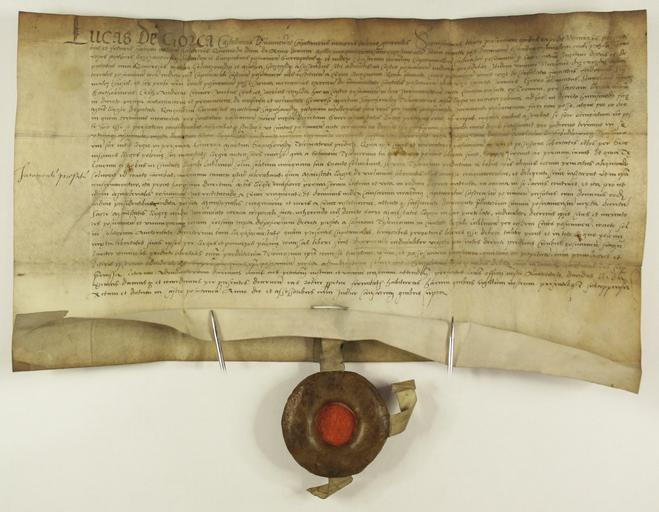 | Keywords: Łukasz Górka kasztelan poznański i starosta generalny Wielkopolski zaświadcza, iż kupcy poznańscy składali przed nim przysięgę w związku z pobieraniem od nich opłat celnych na komorze lubelskiej..png accession number 53/474/D/111 place of creation Poznań Pieczęć Łukasza Górki woskowa zawieszona na pasemku pergaminu cc-zero Historical documents of Poznań State Archive in Poznań Uploaded with VicuñaUploader Górka family 1528 in Poznań | ||||