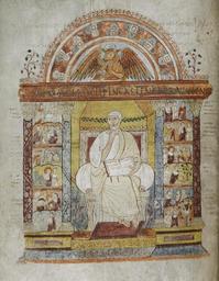 | Keywords: Luke St Augustine's Gospels Corpus Christi Cambridge MS 286.jpeg Illuminated miniature of Luke with a quotation from Sedulius' Paschale carmen inscribed in uncial letters above his head St Augustine's Gospels Corpus Christi College Cambridge MS 286 folio 129r The manuscript was probably started in Italy with later additions at St Augustine's Abbey Canterbury https //parkerweb stanford edu/parker/actions/thumbnail_view do ms_no 286 page 129V size print Digitised manuscript Stanford University Late 6th century Unknown scribe PD-art PD-old Augustine Gospels Parker Library Corpus Christi College Cambridge Saint Augustine of Canterbury |