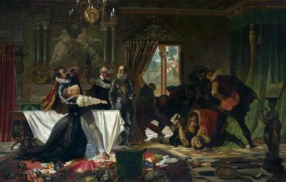 | Keywords: Lulvès Murder of David Rizzio.jpg Artwork Q27702031 Creator Jean Lulvès 1868 Oil on canvas cm 158 5 250 Institution National Museum Warsaw Not on view accession number 184547 object history ProvenanceEvent deposit National Museum in Warsaw Komisja Specjalna credit line Jean Lulvès signature bottom right http //cyfrowe mnw art pl/dmuseion/docmetadata id 32430 show_nav true cyfrowe mnw art pl PD-old-100 DEFAULTSORT 1868; Murder of David Rizzio High-resolution images of paintings from the National Museum in Warsaw Jean Lulvès German paintings in the National Museum in Warsaw Realist paintings in the National Museum in Warsaw 19th-century paintings in the National Museum in Warsaw 1868 paintings James Douglas 4th Earl of Morton Henry Stuart Lord Darnley Holyrood Palace in art Mary Queen of Scots in history paintings Murder in art Daggers in art David Rizzio |