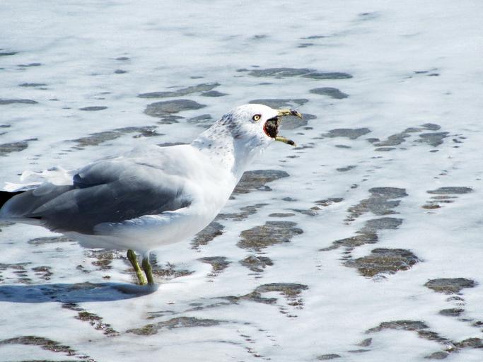 Keywords: lunch gull seagull fresh fish froth ocean sea beach surf