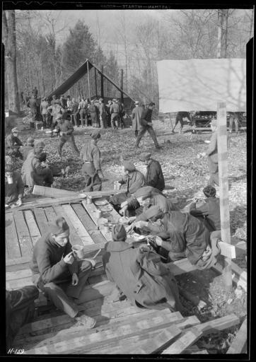 | Keywords: nara:arcid=532777 u.s. national archives usnationalarchives lewis hine lewishine blackandwhite monochrome photo border outdoor surreal black and white Original Caption: Lunch time at CCC Camp, TVA #22, near Esco, Tennessee. The crowd around the cook tent in the left background is being served. Officers and `Overhead' eat in the tent in the right background. All the ground for this Camp had to be cleared from a forested area, November 1933 U.S. National Archives’ Local Identifier: 142-H-159 Photographer: Hine, Lewis Subjects: New Deal, 1933-1939 Rural areas Tennessee (United States, North and Central America) state Water projects Persistent URL: research.archives.gov/description/532777 Repository: Still Picture Records Section, Special Media Archives Services Division (NWCS-S), National Archives at College Park, 8601 Adelphi Road, College Park, MD, 20740-6001. For information about ordering reproductions of photographs held by the Still Picture Unit, visit: www.archives.gov/research/order/still-pictures.html Reproductions may be ordered via an independent vendor. NARA maintains a list of vendors at www.archives.gov/research/order/vendors-photos-maps-dc.html Access Restrictions: Unrestricted Use Restrictions: Unrestricted Original Caption: Lunch time at CCC Camp, TVA #22, near Esco, Tennessee. The crowd around the cook tent in the left background is being served. Officers and `Overhead' eat in the tent in the right background. All the ground for this Camp had to be cleared from a forested area, November 1933 U.S. National Archives’ Local Identifier: 142-H-159 Photographer: Hine, Lewis Subjects: New Deal, 1933-1939 Rural areas Tennessee (United States, North and Central America) state Water projects Persistent URL: research.archives.gov/description/532777 Repository: Still Picture Records Section, Special Media Archives Services Division (NWCS-S), National Archives at College Park, 8601 Adelphi Road, College Park, MD, 20740-6001. For information about ordering reproductions of photographs held by the Still Picture Unit, visit: www.archives.gov/research/order/still-pictures.html Reproductions may be ordered via an independent vendor. NARA maintains a list of vendors at www.archives.gov/research/order/vendors-photos-maps-dc.html Access Restrictions: Unrestricted Use Restrictions: Unrestricted |