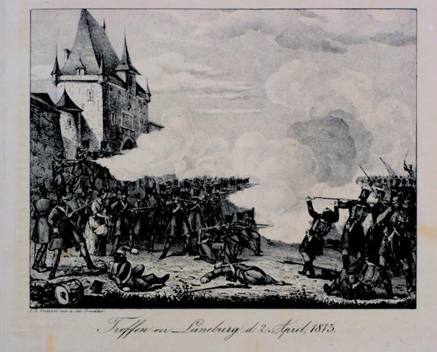 Keywords: Lüneburg Schlacht 1813.jpg Die Bilder enstanden anläßlich eines Workshops im Rahmen von Skillshare 2010 in Zusammenarbeit mit dem Stadtarchiv Lüneburg Die Originale wurden freundlicherweise vom Stadtarchiv zur Verfügung gestellt Truppen vor Lüneburg am 2 April 1813 F A Frenzel 1782-1855 Kupferstecher Registratur K 10 Nr 57 k Lüneburg_Schlacht_18130402_9082 jpg 50 2012-04-13 21 20 UTC Lüneburg_Schlacht_18130402_9082 jpg F A Frenzel derivative work An-d zugschnitten heller Kontrast erhöht Lüneburg_Schlacht_18130402_9082 jpg PD-old Original upload log This image is a derivative work of the following images File Lüneburg_Schlacht_18130402_9082 jpg licensed with PD-old 2010-06-09T16 22 28Z Joergens mi 3366x2771 1419102 Bytes <nowiki></nowiki> Uploaded with derivativeFX 1813 in Lower Saxony Befreiungskriege De Wikisource book leaflet Historical images of Lüneburg Lüneburg in the 1810s Skillshare 2010 Stadtarchiv Stadtarchiv Lüneburg Jömi 201010 Taken with Pentax K20D |