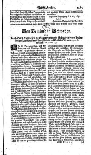 | Keywords: Lünig Reichs Archiv Bd 13 Seite 1485.jpg Scan des historischen Buches Das Teutsche Reichs-Archiv Seite 1485 Scan der Universität Augsburg 1713 Johann Christoph Lünig Author died more than 70 years ago - public domain PD-old-100 Lüning Teutsches Reichs Archiv Band 13 |