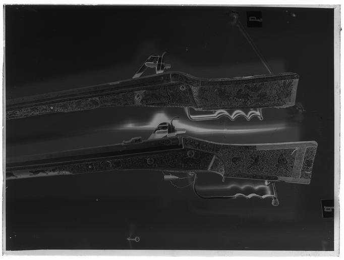 | Keywords: Luntlås-hjullåsbössa - Livrustkammaren - 68581-negative.tif Rund slätborrad blånerad pipa med trumf och åttsidig kammare Rektangulärt böjt svansskruvblad Pipans ovansida täckt av nästan yttäckande påslagen dekor av guld och silver rankverk samt på pipans runda del två ovala kartuscher På kammarenssidofaser vid pipbasen stämplar i form av musselskal LRK vägl 1921 195 Därframför en stående naken kvinna med guldslöja över skötet i h hand ett timglas Tiden därovanför textband BEDENCK D S END På kammarens sidor i rankverket infogade framåt springande hundar rävar och harar av guld och silver Baktill på pipans runda del i den bakre kartuschen en stående kvinna med naken överkropp hellång guldkjol i h hand en guldvåg i v ett svärd med guldfäste Mittpå den runda delen i den främre kartuschen en stående kvinna huvudet profil h lång klänning av guld i h hand ett palmblad av guld i den v en otydlig figur stadsmodell 55 mm från mynningen en graverad björn på ryggen uppåtriktade svinbortsliknande hår sittande och spelande på en säckpipa av guld <br/>Riktmedel Mellan kartuscherna björnen och kornet påslaget en silversiktlist Inlaxade riktmedel siktet saknas korn av silver <br/>Fästning Tre häften Pipan fäst med krysskruv underifrån varbygelskruven samt tre nya pipstift av trä <br/><br/>Hjullås med plant blånerat bakåt i avsatser avsmalnande låsbleck av stål litet rundat ändutskott Hjul fäst med inåtlutande ring samt välvd hjulkapsel Fängpanna utan krutskärm lock med rörlig rektangulär arm Tryckknapp med svagt välvt huvud med skruvskåra Lång hane med kropp med fyrsidigt tvärsnitt innerkanten fasad nästan ringformig hanhals Överkäken lös kort svagt uppåtsvängt fingergrepp med ändvulst Hanskruv med fyrsidigt huvud Kraftig hanfjäder främre delen med rundade kanter bakre hälften med rankdekor ingen studel långt spetsigt åsat löv På låsblecket hjulkapseln och fängpannegaveln påslagen dekor av guld och silver rankverk och bakom hjulet två guldfåglar och en av silver framför hjulet ett bakåtseende rovdjur med kort svans och prickig päls leopard Nedanför säkringsfjädern samma stämpel som på pipan På fängpannelocket en graverad lejonmaskaron på armen ett serafhuvud med vingarna riktade bakåt På hanen graverad bladdekor på ringen på spetsen en maskaron <br/>Säkring Bakom hjulet virvelsäkring med ringformigt fingergrepp fjäder med streckdekor studel med droppformigt svagt välvt löv med mittstreck <br/>Fästning Två låsskruvar <br/>Avtryckare Rak avtryckare med liten ändkula i avtryckarblecket en ställskruv infälld i kolven <br/><br/>Helstock av valnöt med liten vinge kolvlåda och sluten laddstocksränna Nästan yttäckande dekor av vita och grönfärgade beninläggningar hjorthorn Bakplåten samt kantlisterna runt kolvänden saknas nästan helt Utefter stockens kanter lister med beslagsornamentik och flätmönster bakre delen av listen till h om kolvryggen ersatt Vid svansskruvbladets sidor två benplattor med nakna musicerande pojkar till v en lutspelare till h en med fiddla På kolvryggen bakom svansskruvbladet en platta med en mansbyst skäggigt ansikte därbakom ett rankverk och tre papegojor vindruvsklasar fruktfat samt en karyatid På kolvens h sida ovanför kolvlådelocket en figurscen med nakna människor Helenas bortrövande från h ryttare med spjut ersatt båt och två män som hjälper Helena stiga upp i båten stridsscen med 8 stående och en liggande man med klubbor och sköldar till h därom två bågskyttar en ryttare och ytterligare två bågskyttar Kolvlådelock med plan platta av hjorthorn därpå en stående kvinna huvudet profil v klänning och mantel i h hand ett brinnande hjärta i v en pil upptill text VENVS träplattan och fjädern utbytta Framför locket likaså en utbytt benplatta med bladdekor På anslaget en figurscen med Pauli omvändelse till v två ryttare med stegrande hästar en häst utan ryttare Paulus halvliggande på marken och ovanför honom ett moln och Guds bild längst till h ryttare Paulus och ryttarna i antikiserande rustningar Mellan låsskruvarna jaktscen med ryttare med spjut till v hjort som tvingats på knä av två hundar På framstockens sidor jakt- och djurbilder <br/>På v sida bakifrån ryttare med tvåklogaffel och vildsvin som står över en fallen jägare två hundar; jägare vänd mot kolvänden och björn angripen av två hundar; jägare som blåser i horn På den smalare delen därframför hjort och två hundar hund hjort två hundar hornblåsare hund hund och hornblåsare tre hundar två harar samt tre hundar och liggande byte <br/>På framstockens h sida bakifrån björn omgiven av två hundar och två jägare med björnspjut den främre jägaren mindre och placerad på framstockens smalare del; därframför hjort och bakåtvänd jägare med spjut; tre hundar; vildsvin och två bakåtvända jägare den bakre till häst; bakåtvänd hund och framåtvänd hornblåsande jägare; fyra hundar och därframför liggande byte omgivet av två hundar springande hare samt en liten mansfigur <br/>Näsband l 57 mm med bladdekor På h sida saknas de två bakre pipstiftbrickorna den främre ersatt med en nytillverkad kopia av den på v sida Överrörka och spetsrörka i form av benplattor med graverad dekor <br/>På stockens undersida bildfält med de nio muserna på framstocken och sju planeter på kolven På överrörkan en kvinna profil h i v hand ett tvåuddigt föremål Ovanför kvinnan en flammande sol och textband NOVIM MVSE VRANIA den himmelska attribut vanligen en himmelsglob På nederdelen av plattan text till följande bild ERATO den älskliga attribut lyra Fält 2 kvinna helfigur profil v huvudet profil h i händerna en kula glob för Urania överkroppen till knäna och benens nederdel hör ej samman Fält 3 kvinna helbild fas huvudet profil h i h hand en skriftrulle i v bok upptill text CALIOPE den skönstämmiga attribut skrif