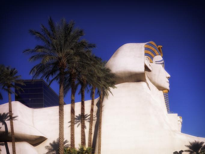 Keywords: luxor hotel las vegas nevada sphynx landmark historic palm trees outside lodging gambling iconic