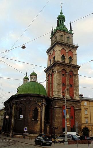 Keywords: Lviv-usptz.jpg uk Успенська це ква і вежа Ко някта у Львові own O Mustafin 2013-09-15 Church of the Dormition Lviv Kornyakt Tower Cc-zero