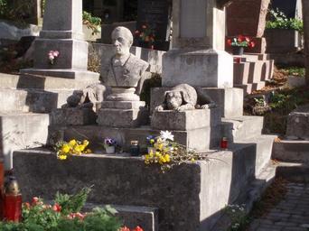 Keywords: Lychakivskiy Cemetery(tomb of Tereza and Jozeph Ivanovich.JPG uk Це могила под ужжя Те ези та Йозефа Івановічів Йозеф був ліка ем і мав двох чоти илапих улюбленців - Плутона та е она Після сме ті свого господа я у 1877 оці вони ви ушили вслід за похо онною п оцесією і залишилися біля могили хазяїна За пе еказами собаки відмовлялися від їжі і поме ли на могилі Один - на день пізніше тому в нього на щоці є дві закам янілі сльози одна - за господа ем інша - за това ишем Авто пам ятника - Павло Евтельє en Tomb of Tereza and Jozeph Ivanovich in Lviv on Lychakiwskiy cemetery Own Amalti 2008-10-18 Tomb of Iwanowicz family