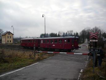 Keywords: M131 level crossing Zacler.jpg en Level crossing in Královec own JanSuchy 2010-11-20 50 40 15 882 N 15 58 6 499 E heading W Královec train station Level crossings in Hradec Králové Region Level crossing barriers in the Czech Republic ČSD Class M 131 1 Královec |