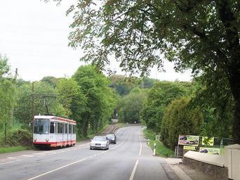 Keywords: M6 at Bochumer Straße.jpg Straßenbahn des Typs M6 auf der eingleisigen Strecke neben der Bochumer Straße in Fahrtrichtung Heven Dorf Wagen 317 hat soeben die Haltestelle Papenholz verlassen Im Rahmen des Baus der Neubaustrecke nach Langendreer S-Bahnhof wird die Bahn hier zukünftig zweigleisig in der Straßenmitte verlaufen Die am oberen Bildrand zu erkennende eingleisige Strecke auf eigenem Bahnkörper mit den Haltestellen Am Honnengraben Urbanusstraße Kaltehardt und Im à mminger Feld wird dann aufgegeben Tram on Bochumer Straße between Papenholz and Crengeldanz in Witten sf 2013-05-18 Bürgerentscheid <span class signature-talk >talk</span> 51 454161 7 320424 region DE_heading NW Trams in Witten May 2013 in Germany 2013 in tram transport in Germany |