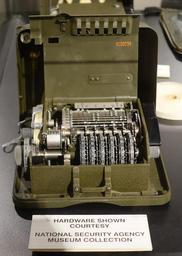 | Keywords: M-209 mechanical cipher machine, Smith Corona - National Electronics Museum - DSC00201.JPG en Exhibit in the National Electronics Museum 1745 West Nursery Road Linthicum Maryland USA All items in this museum are unclassified The museum permitted photography without restriction 2014-07-21 14 48 08 own Daderot cc-zero Uploaded with UploadWizard Cryptography equipment in the National Electronics Museum M-209 | ||||