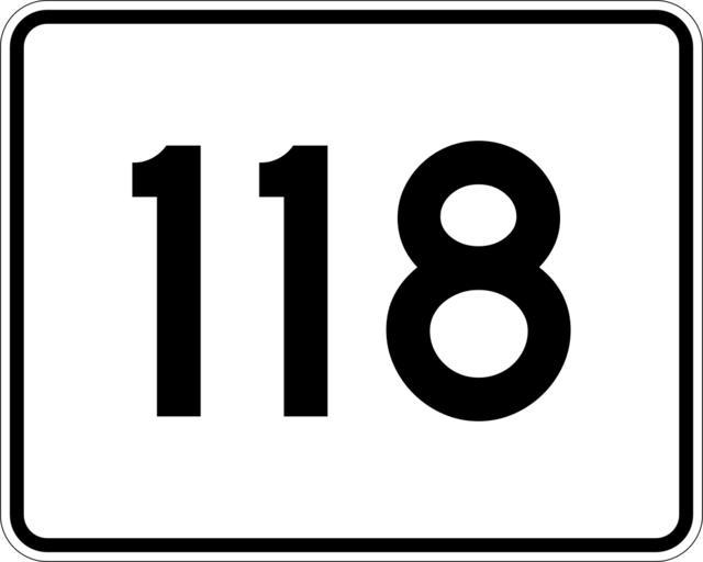 Keywords: MA Route 118.svg 750 mm by 600 mm 30 in by 24 in Massachusetts Route shield made to the specifications of the http //166 90 180 162/mhd/downloads/manuals/1996Mconst pdf 1996 edition of Construction and Traffic Standard Details sign M1-5 Uses the http //www triskele com/fonts/index html Roadgeek 2005 fonts United States law does not permit the copyrighting of typeface designs and the fonts are meant to be copies of a U S Government-produced work anyway The outside border has a width of 1 1 mm and a color of black so it shows up; in reality signs have no outside border The specs actually do not show the curve on the outside border instead making it a perfect rectangle but all signs I have seen round the corners own SPUI spuiother Diagrams of Massachusetts Route shields |
