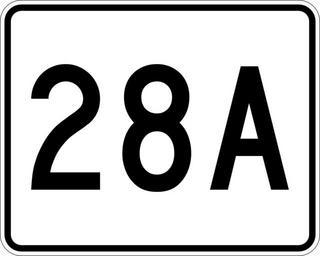 Keywords: MA Route 28A.svg 750 mm by 600 mm 30 in by 24 in Massachusetts Route shield made to the specifications of the http //166 90 180 162/mhd/downloads/manuals/1996Mconst pdf 1996 edition of Construction and Traffic Standard Details sign M1-5 Uses the http //www triskele com/fonts/index html Roadgeek 2005 fonts United States law does not permit the copyrighting of typeface designs and the fonts are meant to be copies of a U S Government-produced work anyway The outside border has a width of 1 1 mm and a color of black so it shows up; in reality signs have no outside border The specs actually do not show the curve on the outside border instead making it a perfect rectangle but all signs I have seen round the corners Note The specs specify Series D font for the numbers However that font does not fit when none of the characters is a one and so those signs actually use Series C This image is true to real signs not the specs own SPUI spuiother Diagrams of Massachusetts Route shields |