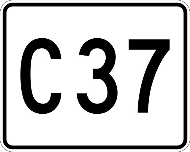 Keywords: MA Route C37.svg 750 mm by 600 mm 30 in by 24 in Massachusetts Route shield made to the specifications of the http //166 90 180 162/mhd/downloads/manuals/1996Mconst pdf 1996 edition of Construction and Traffic Standard Details sign M1-5 Uses the http //www triskele com/fonts/index html Roadgeek 2005 fonts United States law does not permit the copyrighting of typeface designs and the fonts are meant to be copies of a U S Government-produced work anyway The outside border has a width of 1 1 mm and a color of black so it shows up; in reality signs have no outside border The specs actually do not show the curve on the outside border instead making it a perfect rectangle but all signs I have seen round the corners Note The specs specify Series D font for the numbers However that font does not fit when none of the characters is a one and so those signs actually use Series C This image is true to real signs not the specs own SPUI spuiother Diagrams of Massachusetts Route shields |