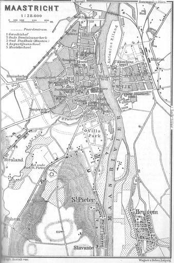 Keywords: Maastricht 1905.jpg nl Kaart van Maastricht uit 1905 De buurtspoorlijn van Boschpoort naar Glons is te zien te zien evenals de stadstramlijn van het station naar de Grote markt en de Boulevard Het stationsgebouw is niet aan de stadszijde 1905 Baedeker Belgique et Hollande 1905 page 92 Anstalt von Wagner Debes Leipzig Custom license marker 2013 11 24 PD-old-70-1923 Compagny work Baedeker Belgique et Hollande 1905 Wagner Debes 1905 maps of the Netherlands Netherlands Uploaded with UploadWizard Old maps of Maastricht Former vicinal railway lines in Belgium Trams in Maastricht |