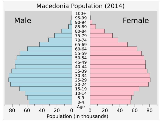 | Keywords: Macedoniapop.svg translate yes en Current population pyramid of Macedonia 2014 from UN estimates World Population Prospects http //esa un org/unpd/wpp/Excel-Data/population htm The 2012 Revision 2014-08-26 own Delphi234 cc-zero Uploaded with UploadWizard Population pyramids of Macedonia |