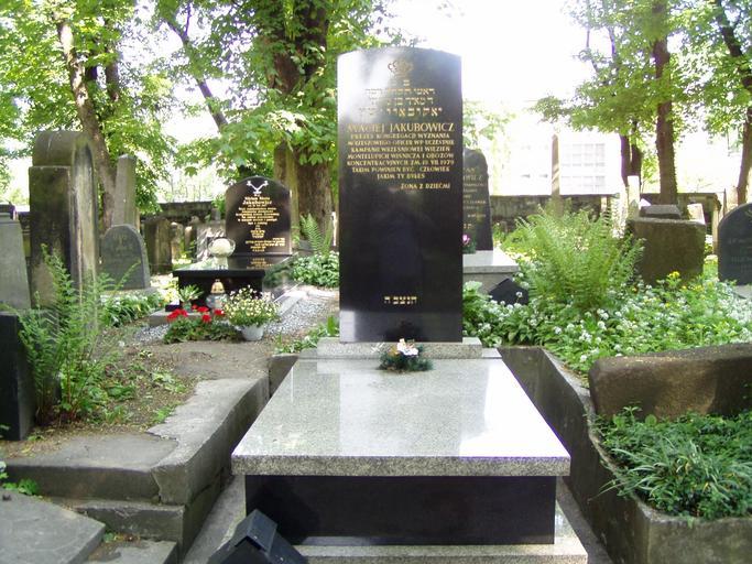 Keywords: MaciejJakubowiczGrave.JPG en Grave of Maciej Jakubowicz own Birczanin New Jewish Cemetery in Kraków Crown on Jewish gravestones in Poland