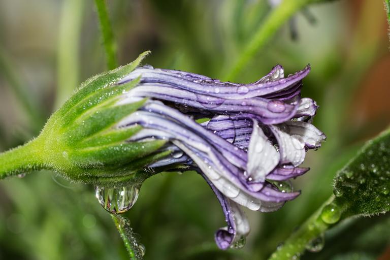 Keywords: macro osteospermum ecklonis cape basket bornholm marguerite white violet marguerite blossom bloom flower nature plant bloom close wet drop of water rising bloom