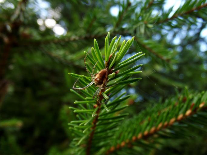 Keywords: macro sheet nature colors spring needles spider spruce green animal