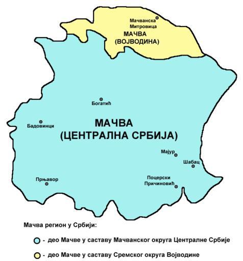 | Keywords: Macva reg sr.png en map of Mačva region in Serbia - Serbian language map version <br>Serbian mapa regiona Mačva u Srbiji - verzija mape na srpskom jeziku own PANONIAN 2009 self made map by user PANONIAN References Slobodan Radovanović Geografski atlas Magic Map Smederevska Palanka 2001 Denis Šehić - Demir Šehić Školski geografski atlas Srbije Beograd 2007 Geografski atlas Intersistem Kartografija Beograd 2004 Milovan Radovanović Kosovo i Metohija - antropogeografske istorijskogeografske demografske i geopolitičke osnove Beograd 2008 Popis stanovništva domaćinstava i stanova u 2002 Stanovništvo knjiga 1 Nacionalna ili etnička pripadnost - Podaci po naseljima Republika Srbija Republički zavod za statistiku Beograd februar 2003 Maps in Serbian Maps of Mačva |