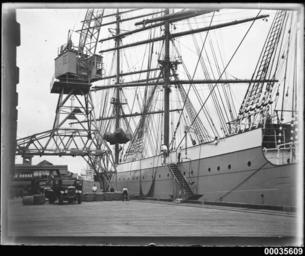 | Keywords: hood collection hoodcollection samuel j hood collection samueljhoodcollection magdalene vinnen magdalenevinnen woolloomooloo sydney german german barque germanbarque barque crew wool wool bales woolbales cargo winch sam hood samhood blackandwhite monochrome black and white This photograph depicts crew members with wool bales being winched on board the four-masted steel barque MAGDALENE VINNEN at number 2 wharf in Woolloomooloo, Sydney. The vessel sailed into Sydney Harbour on 27 February 1933, under the command of Captain Lorenz Peters. The barque was loaded with almost 16,000 bales of wool, the fourth largest shipment to have left Sydney, before it sailed the record-breaking 82-day voyage for Falmouth, England. MAGDALENE VINNEN visited Australia again in 1935, with a cargo of wheat, lifted from Port Broughton in South Australia.  This photo is part of the Australian National Maritime Museum’s Samuel J. Hood Studio collection. Sam Hood (1872-1953) was a Sydney photographer with a passion for ships. His 60-year career spanned the romantic age of sail and two world wars. The photos in the collection were taken mainly in Sydney and Newcastle during the first half of the 20th century.   The ANMM undertakes research and accepts public comments that enhance the information we hold about images in our collection. This record has been updated accordingly.   Photographer: Samuel J. Hood Studio Collection  Object no. 00035609 This photograph depicts crew members with wool bales being winched on board the four-masted steel barque MAGDALENE VINNEN at number 2 wharf in Woolloomooloo, Sydney. The vessel sailed into Sydney Harbour on 27 February 1933, under the command of Captain Lorenz Peters. The barque was loaded with almost 16,000 bales of wool, the fourth largest shipment to have left Sydney, before it sailed the record-breaking 82-day voyage for Falmouth, England. MAGDALENE VINNEN visited Australia again in 1935, with a cargo of wheat, lifted from Port Broughton in South Australia.  This photo is part of the Australian National Maritime Museum’s Samuel J. Hood Studio collection. Sam Hood (1872-1953) was a Sydney photographer with a passion for ships. His 60-year career spanned the romantic age of sail and two world wars. The photos in the collection were taken mainly in Sydney and Newcastle during the first half of the 20th century.   The ANMM undertakes research and accepts public comments that enhance the information we hold about images in our collection. This record has been updated accordingly.   Photographer: Samuel J. Hood Studio Collection  Object no. 00035609 |