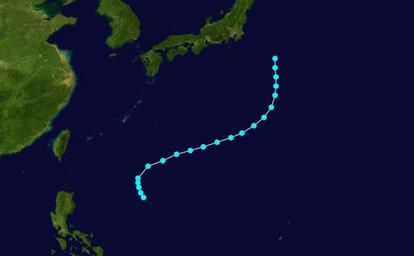 Keywords: Maggie 1946 track.png Track map of Tropical Storm Maggie of the 1946 Pacific typhoon season The points show the location of the storm at 6-hour intervals The colour represents the storm's maximum sustained wind speeds as classified in the Saffir-Simpson Hurricane Scale see below and the shape of the data points represent the nature of the storm according to the legend below User Nilfanion/Tc/T Created by Anhamirak using Wikipedia WikiProject Tropical cyclones/Tracks The background image is from NASA Tracking data is from the Joint Typhoon Warning Center 2010-07-27 Anhamirak 1946 Pacific typhoon season track maps Commonist |