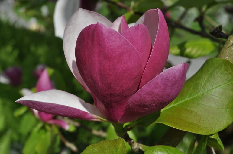 Keywords: magnolia blossom bloom flower bloom nature red white tree plant