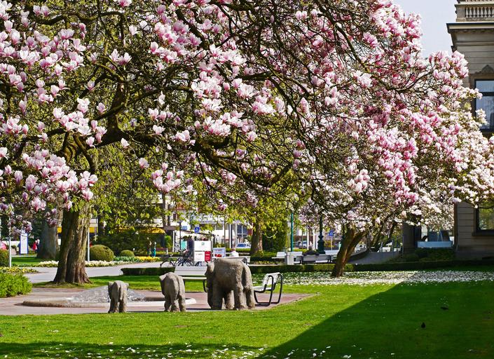 Keywords: magnolia blossom kurpark bad rothenfelde kurhaus park fountain water feature spa specialist clinics rush beete tulips daffodils spring sun
