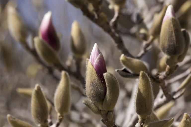 Keywords: magnolia bud blossom bloom bush spring bloom plant nature pierre magnol dorsal white tender pink violet