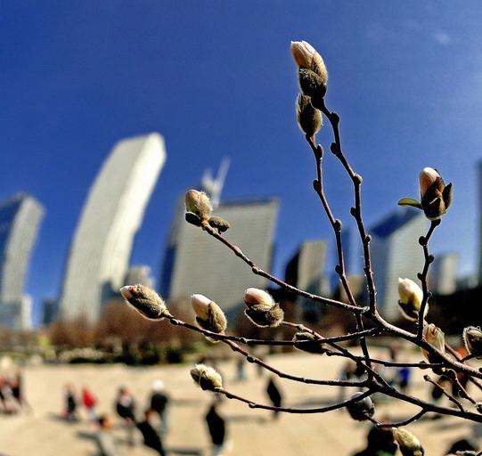Keywords: magnolia flowers buds in bloom spring flourishing white pink closeup the background reflection twigs magnolia branches nature plant flower buds tree benches