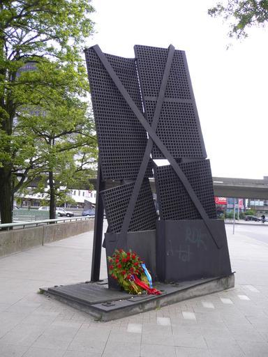| Keywords: Mahnmal Gerichtsgefängnis Hannover vor dem Pavillon 8. Mai 1989 Befreiung vom Nationalsozialismus alle Sprachen 003.jpg Nazism in Hanover between culture center Pavillon Raschplatz place and the Hannover Central Station Hannover Hauptbahnhof Hannover Hbf Mahnmal Gerichtsgefängnis Hannover vor dem Pavillon wurde am 8 Mai 1989 eingeweiht dem Jahrestag der Befreiung vom Nationalsozialismus Das von Hans-Jürgen Breuste entworfene Mahnmal zeigt verschiedene unterbrochen vertikal angeordnete Stahlgitter-Platten die von einem großen Andreaskreuz gekreuzt werden Die liegende Inschrift am Fuß des Mahnmals weist über die Hamburger Allee in Richtung Raschplatz bis wohin die Mauern des abgebrochenen Gerichtsgefängnisses reichten Die Inschrift lautet Hier stand bis zum Abriß 1964 das Gerichtsgefängnis Hannover in dem von 1933 bis 1945 zahlreiche Gegner und Gegnerinnen des Nationalsozialismus inhaftiert waren Sie kamen aus allen Schichten der Bevölkerung bis 1937 vor allem aus der Arbeiterschaft - darunter Sozialdemokraten Kommunisten und Gewerkschafter Außer ihnen wurden hier Männer und Frauen aus verfolgten Minderheiten wie Sinti Zeugen Jehovas und Homosexuelle gefangengehalten Während des Zweiten Weltkrieges haben hier auch ausländische Zwangsarbeiter und Zwangsarbeiterinnen gelitten In diesem Gefängnis waren viele Mitglieder der hannoverschen Sozialistischen Front einer der größten Widerstandsgruppen der SPD gegen den Nationalsozialismus inhaftiert Von ihnen werden Gustchen Breitzke Fritz Lohmeyer Therese Wittrock und Fritz Wulfert genannt Zu einer Widerstandgruppe der Sozialistischen Arbeiterpartei gehörte Otto Brenner Von 1937 bis 1943 saß hier der Vorsitzende der KPD Ernst Thälmann in Einzelhaft Stellvertretend für die Verfolgten aus dem kommunistischen Widerstand werden Paul Arndt Marianne Baecker Grete Hoell und Walter Krämer genannt Das Mahnmal Gerichtsgefängnis erinnert daran daß sich Justiz und Polizei als Helfershelfer des Faschismus betätigten Hier war ein Ort der Denunziation an dem Menschen willkürlich und aus politischen Gründen inhaftiert waren own Rainer Hoffschildt Memorials in Hannover Mahnmal Gerichtsgefängnis Hannover Monuments and memorials to victims of National Socialism in Lower Saxony Holocaust memorials in Hannover Lister Meile Hannover Mahnmal Gerichtsgefängnis Hannover Jehovah's Witnesses in Germany |