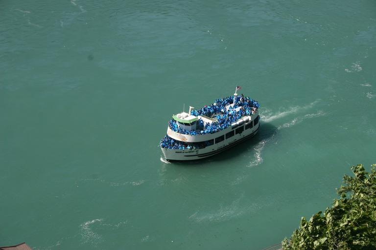 Keywords: american falls blue boat bridal veil ontario park passenger people raincoat ride river