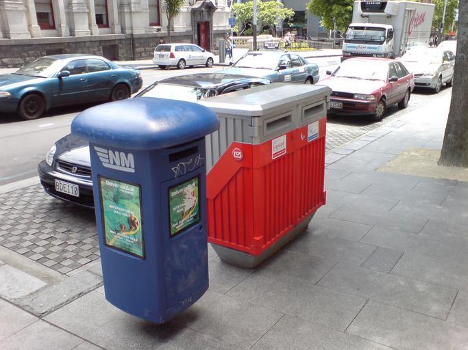 | Keywords: Mailboxes Queen Street Auckland.jpg Several mailboxes New Zealand Post and Universal Mail a competitor's on Queen Street Auckland City New Zealand own Own picture 2007-11 Uploader See also Image Postal deregulation New Zealand jpg Photos taken by Ingolfson Mailboxes in New Zealand Red mailboxes Blue mailboxes 2007 in New Zealand Queen Street Auckland |