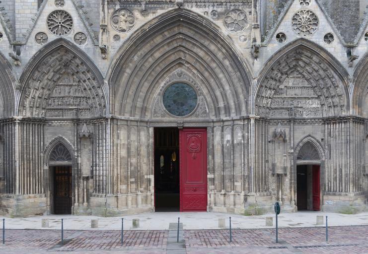 Keywords: Main entrance cathedral Bayeux.jpg en Main entrance of the Cathedral Bayeux Calvados Normandy France fr Entrée principale détail de la cathédrale de Bayeux Calvados 2015-04-30 12 37 39 own Jebulon other versions 49 275735 -0 704206 cc-zero Uploaded with UploadWizard West facade of Cathédrale Notre-Dame de Bayeux Red doors in France Quality images by Jebulon QualityImage