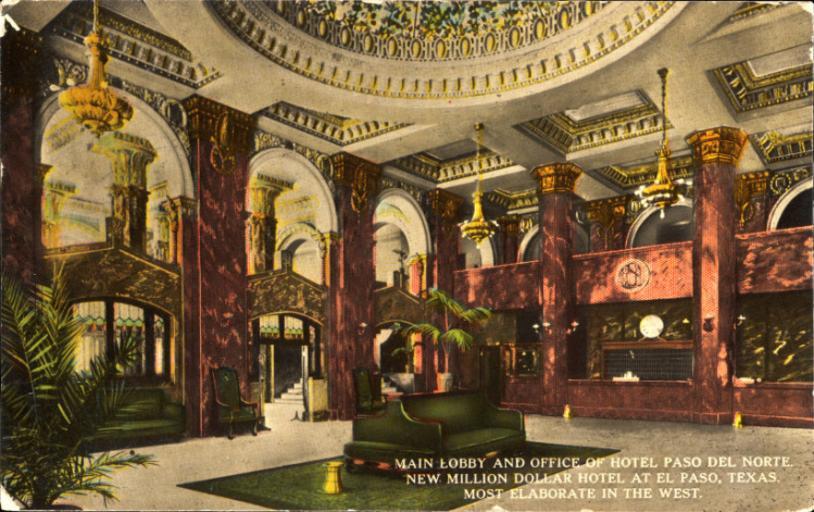 Keywords: Main Lobby and Office, Hotel Paso Del Norte, El Paso, Texas.jpg Hotel Paso del Norte ” in El Paso Texas The 1912 Beaux-Arts style building was designed by Trost Trost and is now on the National Register of Historic Places 1913-03-10 The University of Houston Digital Library http //digital lib uh edu Curt Teich Co Custom license marker 2012 03 24 This image is in the public domain and may be used freely If publishing in print electronically or on a website please use the citation Courtesy of Special Collections University of Houston Libraries To order a higher resolution reproduction see http //info lib uh edu/about/campus-libraries-collections/special-collections-archives/request-digital University of Houston Libraries Uploaded with UploadWizard Lobbies room Hotel Paso del Norte Hotels in Texas Hotel Paso del Nortes Buildings in El Paso Texas Hotel Paso del Nortes Interiors of hotels in Texas Hotel Paso del Norte History of El Paso Texas 1913 1913 in Texas Curt Teich Paso del Norte Postcards of El Paso Texas Hotel Paso del Norte Built in Texas in 1912 Hotel Paso del Norte Hotel Paso del Norte Hotel Paso del Nortes Hotels on the National Register of Historic Places in Texas Hotel Paso del Nortes Trost Trost Hotel Paso del Nortes Beaux-Arts architecture in Texas Hotel Paso del Nortes 1913 postcards of the United States |