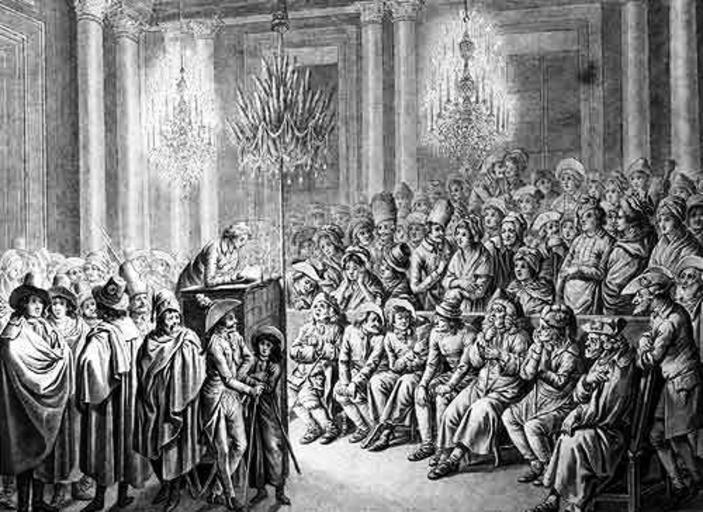 | Keywords: Mainzjakobiner.jpg  de Versammlung des Mainzer Jakobinerclubs im ehemaligen kurfürstlichen Schloss Friedrich Georg Pape trug seine Thesen zum Verhältnis der französischen Verfassung zur katholischen Kirche dort am 25 November 1792 vor Lavierte Federzeichnung 44 3x57 9cm Mainz Landesmuseum Mainz fr Une séance au club des Jacobins mayençais en 1792 dans la Château des Princes-Électeurs à Mayence Frederic-Georges Pape à discours sur la compatibilité de la nouvelle constitution française avec le catholicisme le 25 novembre 1792; Musée du Land Mayence Deutschland und die Französische Revolution 1789/1989 Eine Ausstellung des Goethe-Instituts zum Jubiläum des welthistorischen Ereignisses Cantz Stuttgart 1989 ISBN 3-89322-019-4 p 153 or http //www mainz de/WGAPublisher/online/html/default/mkuz-5t3hvj de html 1792 Johann Jacob Hoch 1750-1829 PD-old-100 1792 in Mainz Jacobin Club Landesmuseum Mainz |