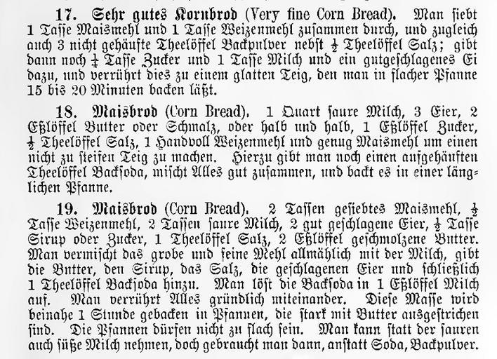 Keywords: Maisbrot-Rezepte.png de Maisbrot-Rezepte von Henriette Davidis 1897 Praktisches Kochbuch für die Deutschen in Amerika Brumder Milwaukee 1897 page 313 Henriette Davidis 1801-1876 other versions PD-old-70-1923 Uploaded with UploadWizard Books by Henriette Davidis Cornbread