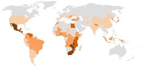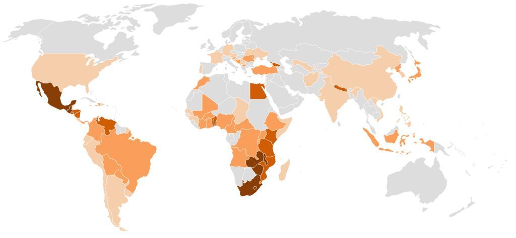 Keywords: Maize food average per capita.png Maize Average per capita between 1995-1997 kg/yr <ref>http //www cimmyt org/Research/economics/map/facts_trends/maizeft9900/pdfs/maizeft9900_Part4 pdf According to 2000 CIMMYT World Maize Facts and Trends </ref> <p><span style color 893e05 > –ˆ –ˆ</span> more than 100 kg/yr</p> <p><span style color d05c04 > –ˆ –ˆ</span> from 50 to 99 kg/yr</p> <p><span style color fa9f5b > –ˆ –ˆ</span> from 19 to 49 kg/yr</p> <p><span style color f5cfac > –ˆ –ˆ</span> from 6 to 18 kg/yr</p> <p><span style color dddddd > –ˆ –ˆ </span>5 or less<div style font-size 90 ><references /></div> 2006-04-04 own assumed Pixeltoo Distributional maps of the world Maize-based food