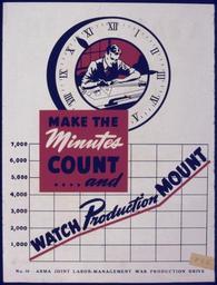 Keywords: Make the Minutes Count and Watch Production Mount^ - NARA - 534541.jpg Scope and content General notes 534541 Local identifier 179-WP-690 Office for Emergency Management War Production Board 01/1942 - 11/03/1945 Still Picture Records Section Special Media Archives Services Division NWCS-S National Archives at College Park 8601 Adelphi Road College Park MD 20740-6001 other date circa 1942 1943 Record group Record Group 179 Records of the War Production Board 1918 - 1947 Record group ARC 508 War Production Board compiled 1942 - 1943 Series ARC 533858 File unit File unit ARC Variant control numbers NAIL Control Number NWDNS-179-WP-690 Other versions <gallery> File Make_the_Minutes_Count_and_Watch_Production_Mount _-_NARA_-_534541 tif tif File Make_the_Minutes_Count_and_Watch_Production_Mount _-_NARA_-_534541 jpg jpg </gallery> NARA-cooperation PD-USGov World War II posters from the United States |