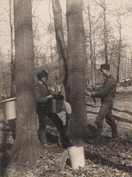 | Keywords: children maple syrup industry maplesyrupindustry outdoor monochrome Photographer: Reuben R. Sallows (1855 - 1937) Description: Two boys tapping trees for maple sugar Object ID : 0372-rrs-ogohc-ph View additional photographs by Sallows that are held in other collections at the Reuben R. Sallows Digital Library. Order a higher-quality version of this item by contacting the Huron County Museum (fee applies). Photographer: Reuben R. Sallows (1855 - 1937) Description: Two boys tapping trees for maple sugar Object ID : 0372-rrs-ogohc-ph View additional photographs by Sallows that are held in other collections at the Reuben R. Sallows Digital Library. Order a higher-quality version of this item by contacting the Huron County Museum (fee applies). |