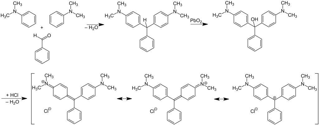 Keywords: Malachite green Synthesis V.2.svg en Malachite_green_Synthesis de Malachitgrün_Synthese own Jü 05/07/2010 Malachite green
