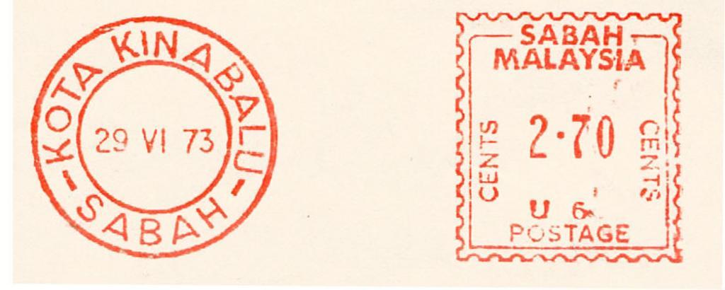 Keywords: Malaysia stamp type EE1 KOTA KINABALU.jpg en Meter stamp catalog image Malaysia type EE1 with town mark KOTA KINABALU Richard Stambaugh Richard Stambaugh 2012-03-06 Meter stamps of Malaysia
