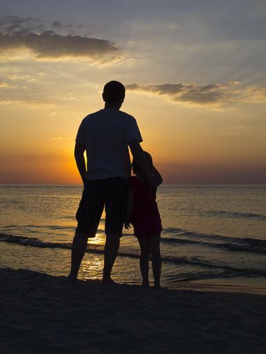 Keywords: male child west family love the proximity of the the sun sunset sky clouds light sea the coast the baltic sea summer nature holidays landscape the rays the waves