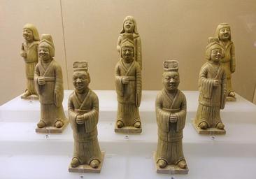 | Keywords: Male entourage, China, from a tomb in Fuma, Wanzhou, Chongqing, Tang dynasty, 618-907 AD, green-glazed ceramic - Sichuan Provincial Museum - Chengdu, China - DSC04171.jpg en Exhibit in the Sichuan Provincial Museum 四 博物院 also known as the Sichuan Museum 251 Huanhua S Road Chengdu Sichuan China Photography was permitted in the museum without restriction This work is old enough so that it is in the public domain 2015-09-24 01 41 03 own Daderot other versions PD-old-100 cc-zero Tomb figurines of the Tang Dynasty in the Sichuan Provincial Museum |