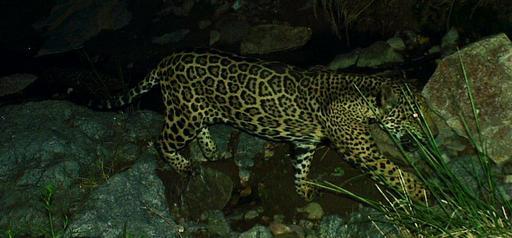 Keywords: outdoor animal [UA Jaguar 2014 09 15 a a.jpg] Male jaguar photographed by automatic wildlife cameras in the Santa Rita Mountains on September 15, 2014, as part of a U.S. Fish and Wildlife Service/Department of Homeland Security-funded jaguar survey conducted by University of Arizona. This is the same jaguar that has been repeatedly photographed in the Santa Rita Mountains. Photo Courtesy of UA/USFWS [UA Jaguar 2014 09 15 a a.jpg] Male jaguar photographed by automatic wildlife cameras in the Santa Rita Mountains on September 15, 2014, as part of a U.S. Fish and Wildlife Service/Department of Homeland Security-funded jaguar survey conducted by University of Arizona. This is the same jaguar that has been repeatedly photographed in the Santa Rita Mountains. Photo Courtesy of UA/USFWS