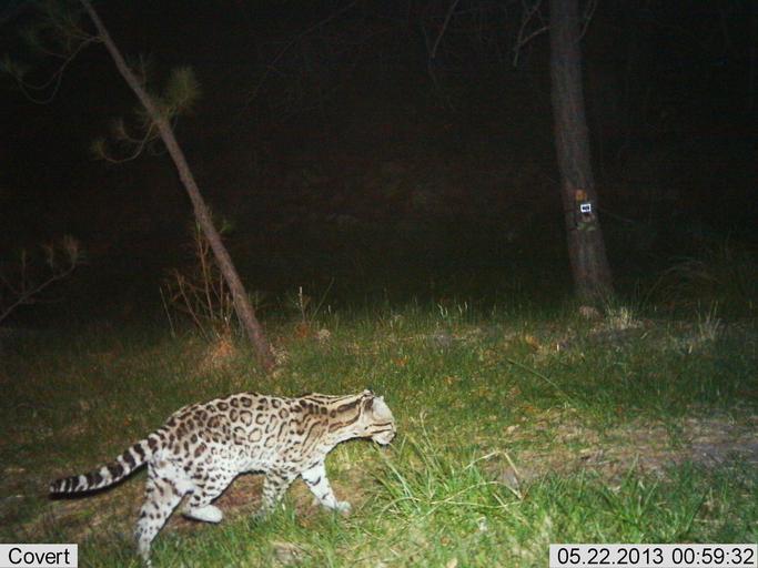 | Keywords: outdoor [UA Ocelot 2013 05-22.jpg] Male ocelot photographed by automatic wildlife cameras in the Huachuca Mountains on May 22, 2013 as part of a U.S. Fish and Wildlife Service/Department of Homeland Security-funded jaguar survey conducted by University of Arizona. This ocelot was first photographed in February 2011. Photo Courtesy of UA/USFWS [UA Ocelot 2013 05-22.jpg] Male ocelot photographed by automatic wildlife cameras in the Huachuca Mountains on May 22, 2013 as part of a U.S. Fish and Wildlife Service/Department of Homeland Security-funded jaguar survey conducted by University of Arizona. This ocelot was first photographed in February 2011. Photo Courtesy of UA/USFWS |