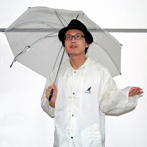 Keywords: male person umbrella rain coat vinyl nylon hat glasses rainy season face rain weather weather forecast rainwear adult