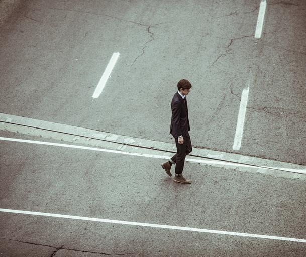 Keywords: male man human suit intersection street walking road crosswalk cement gray grey public domain publicdomain License: Public Domain Dedication (CC0) Source: Unsplash License: Public Domain Dedication (CC0) Source: Unsplash